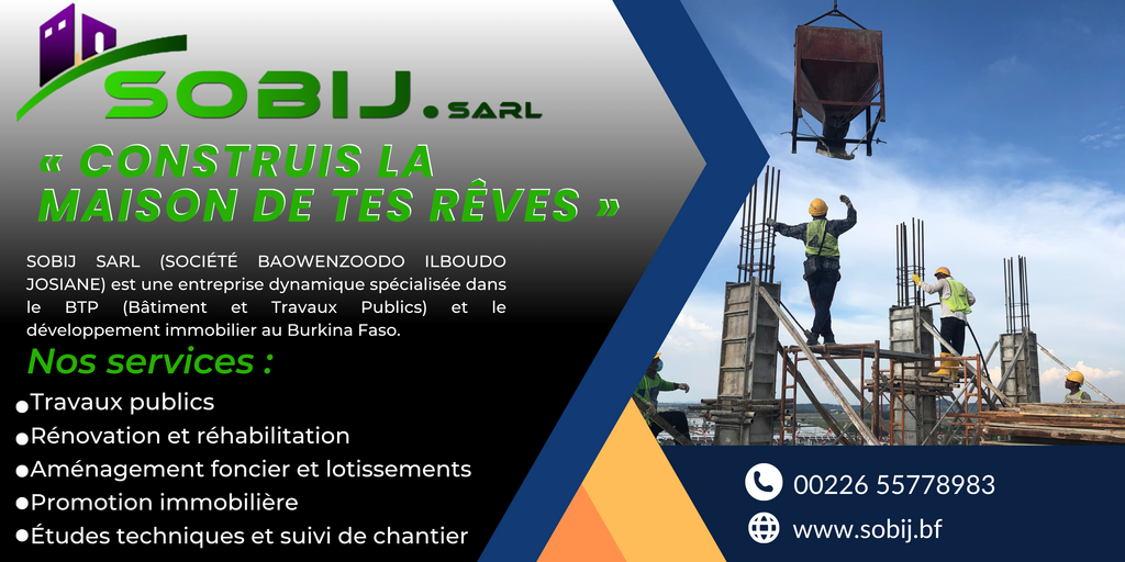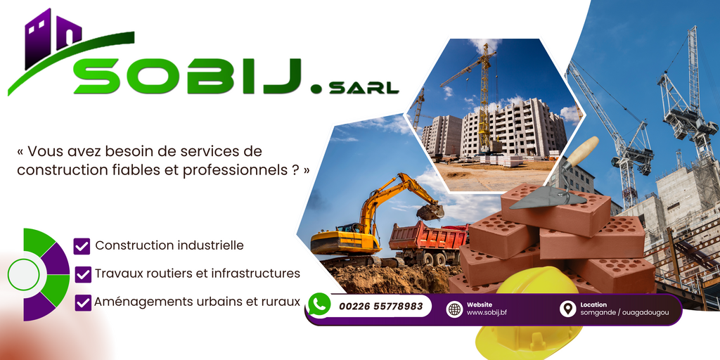SOBIJ SARL est une entreprise burkinabè spécialisée dans le Bâtiment et les Travaux Publics (BTP) ainsi que dans le développement immobilier. Fondée avec la volonté de contribuer activement à l’essor des infrastructures nationales, SOBIJ SARL incarne l’excellence, la rigueur et l’innovation dans tous ses projets.
